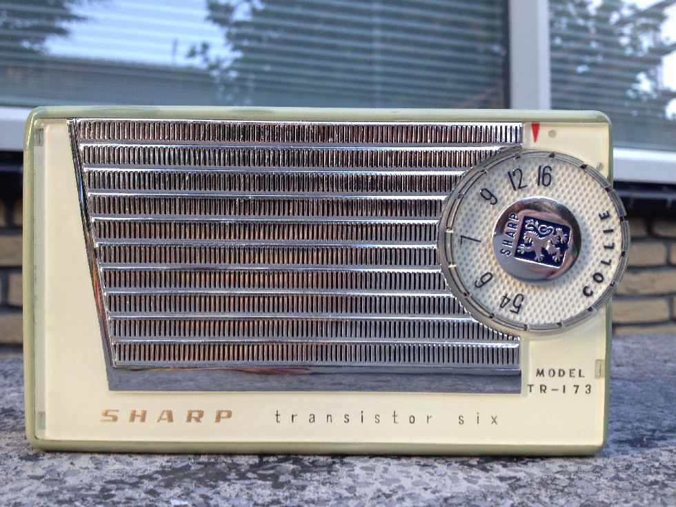 Om het, niet recht toe recht aan, luidsprekerrooster zat een mooie glimmende zilverkleurige rand en daarom heen weer een plexiglas afwerking waarin de de naam “SHARP” was ingegraveerd en de tekst “Transistor Six” en “Model TR-173”. Op een klein stukje plexiglas was een rood pijltje ingegraveerd dat naar de afstemwaarde wees van de afstemknop.