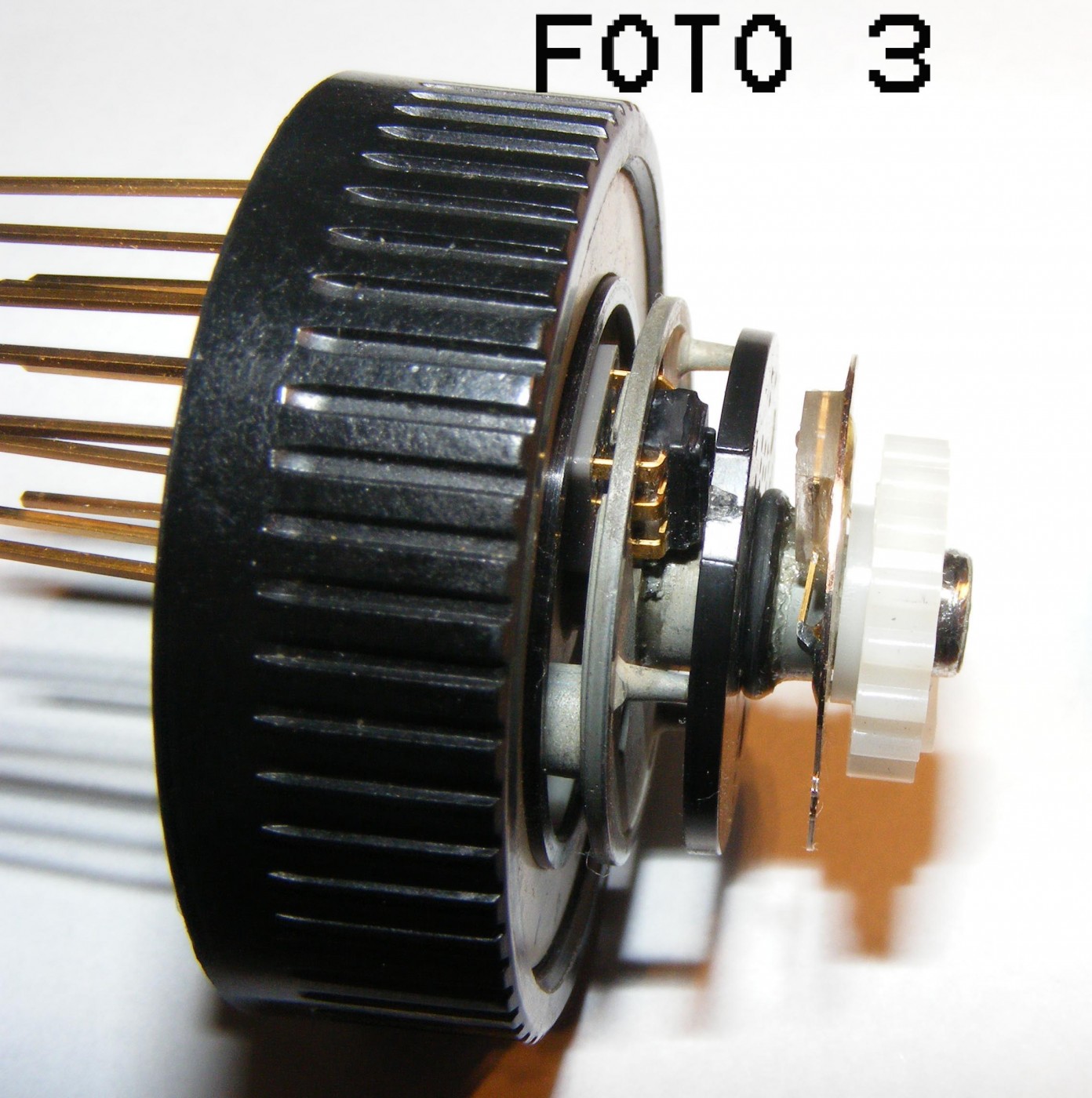 De draaiknop beweegt het zwarte schijfje dat goed te zien is op foto 4. In deze zwarte schijf zie je maximaal 5 gaatjes zitten.