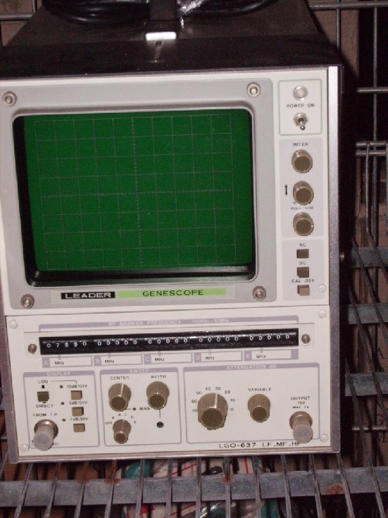 Sinds kort heb ik een toestel in huis van LEADER, het blijkt een kombinatie te zijn van een wobbelgenerator plus een oscilloscoop. De frequentie stijgt synchroon met de horizontale sweep. Al een poos mee aan 't experimenteren geweest maar nog niet het fijne ervan te weten gekomen.