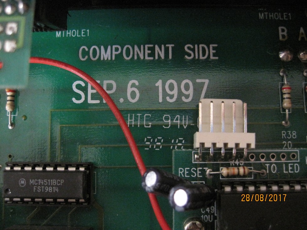 De verbinding tussen uP bordje en de rest incl. voeding voor het display is aangesloten via een vierpolige verbinding met de aanduidingen P,N,D en C. Zou positief, negatief, data en clock kunnen zijn.