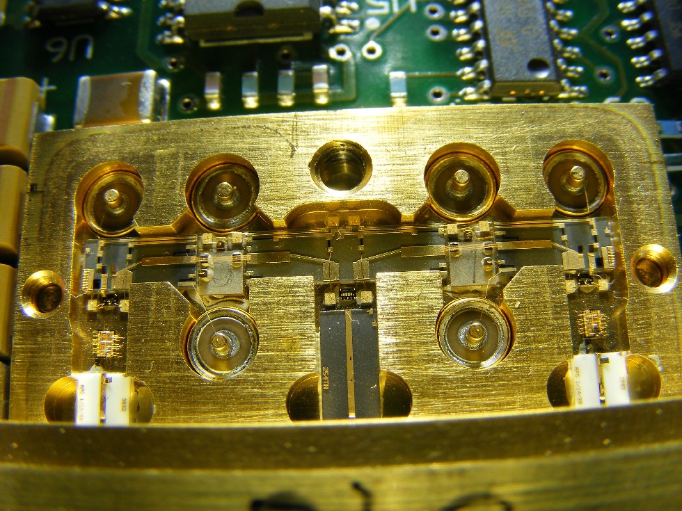 Zoals eerder beschreven was het relais aan de in/uitgang defect waarschijnlijk door een te hoge spanning. En nu blijkt dat ook één directionele koppeling doorgebrand was. Op de foto kun je deze koppeling zien met ook de twee minuscule weerstanden die voor de 16 dB demping/koppeling zorgen. Beide weerstanden waren hoogohmig.