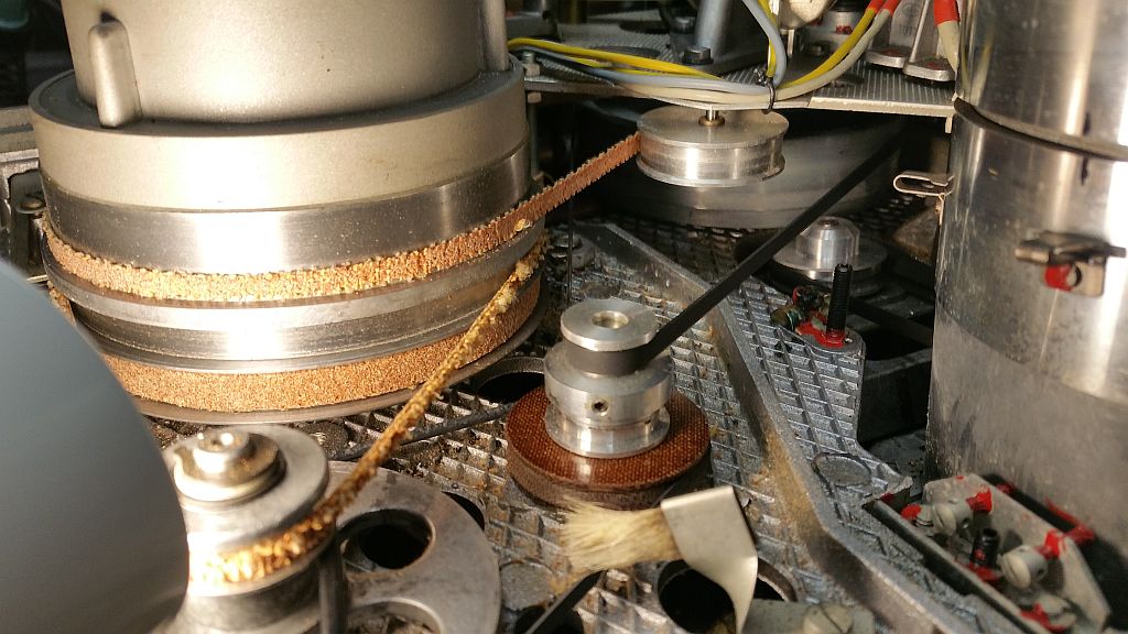 Vliegwiel snaar bleek oorspronkelijk op de onderste pully te lopen.