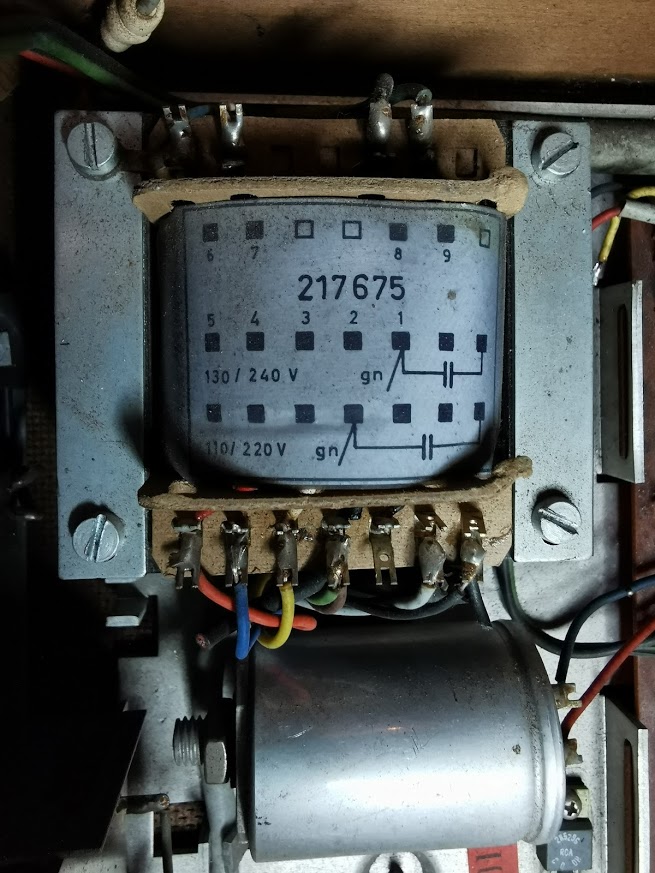Onderstaand o.a. de afbeelding van mijn Dual CV20 zonder condensator over de trafo (2e foto), althans in vergelijk met de afbeelding die ik elders op het net heb gevonden. )1e foto