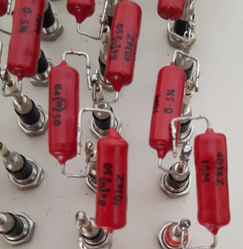 projectbox met veel 4 mm bananenbussen en 10M weerstanden