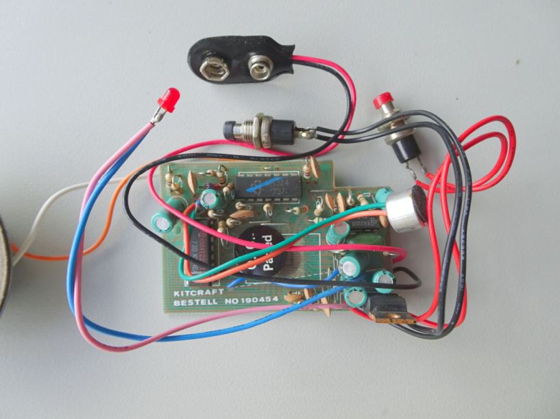 Functieklaar met alle onderdelen zoals luidspreker, microfoon, batterijhouder, opname-led en opname-drukknop voor max. 16 seconden opname, alsmede afspeel-drukknop.
