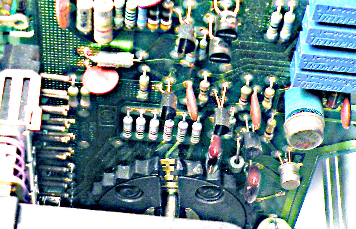 Daarna met een penseeltje de print contacten stripjes en de schakelaar-dekken stuk voor stuk aangetipt met een weinig PRF-7-78. En daarna de printen en de tijdbasis schakelaars enige malen bewogen of verdraaid op alle bereiken.