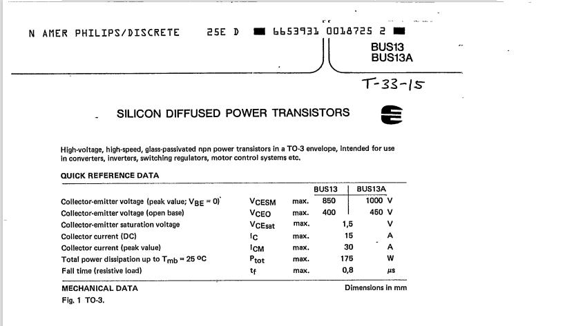 Mijn directe vraag is kan een BUS13 transistor bij die opgegeven spanning wel meer stroom leveren?.